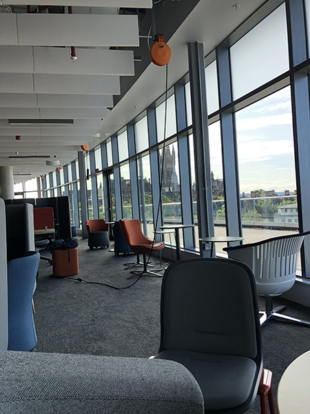 • Schienensysteme an der Decke helfen dabei, flexibel und ggf. temporär Strom an bestimmten Orten im Raum bereitzustellen.