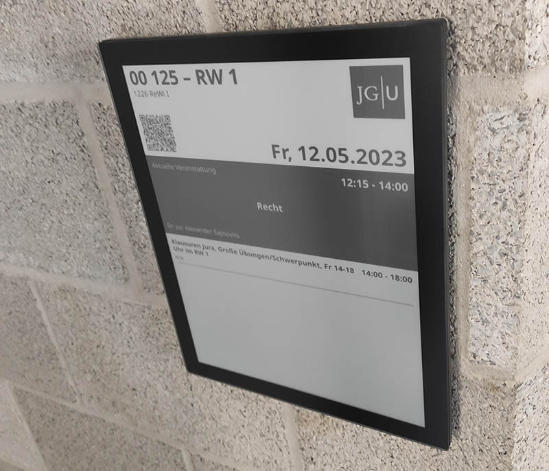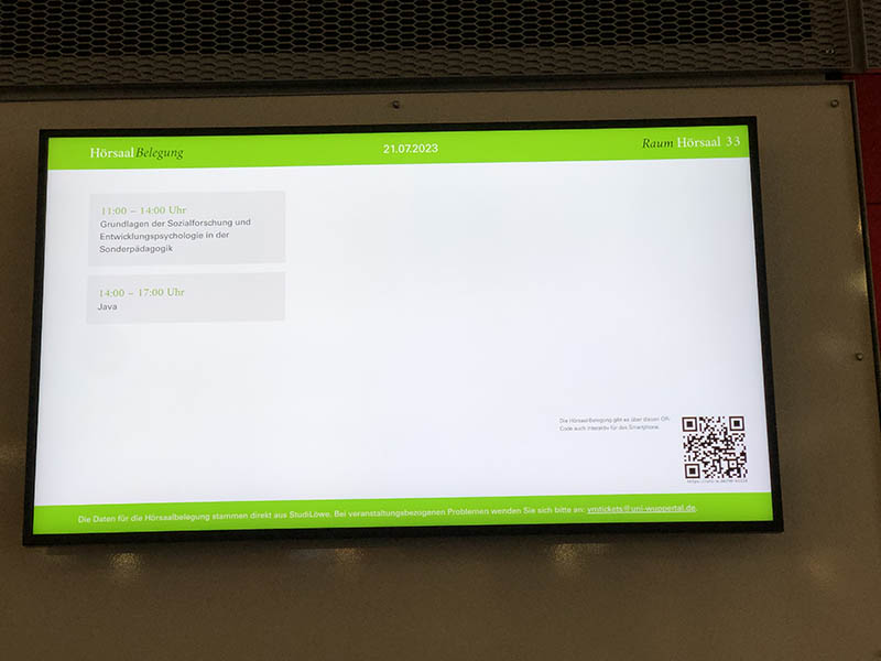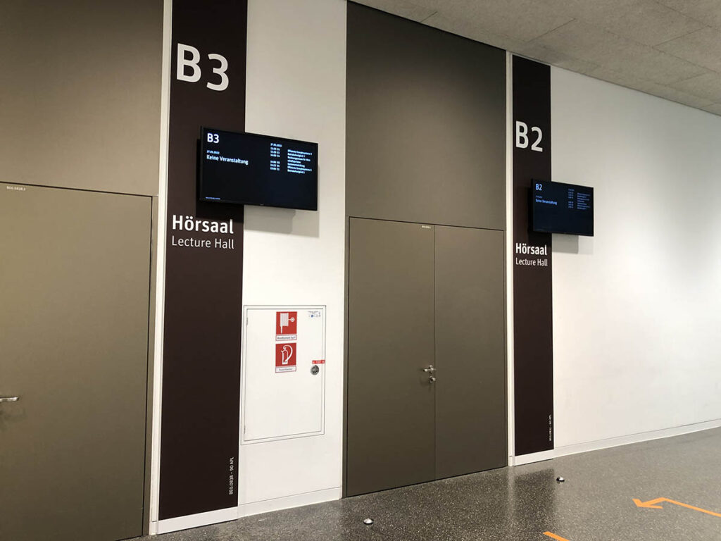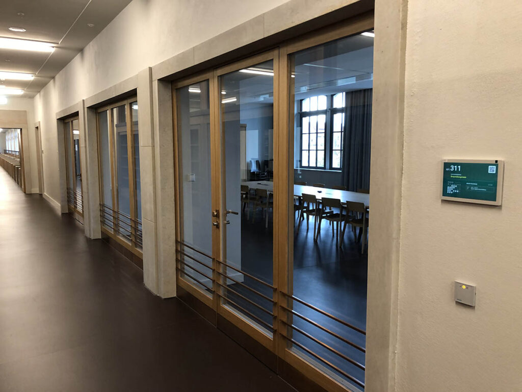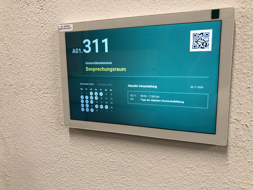 Digitale Raumbeschilderung ermöglicht für die Raumbelegung, diese für alle Hochschulangehörigen transparent zu machen. Raumbuchung und Planung der Raumnutzung können durch Digital Signage verbessert werden und so zu einer erheblichen Verbesserung der Raumauslastung führen.