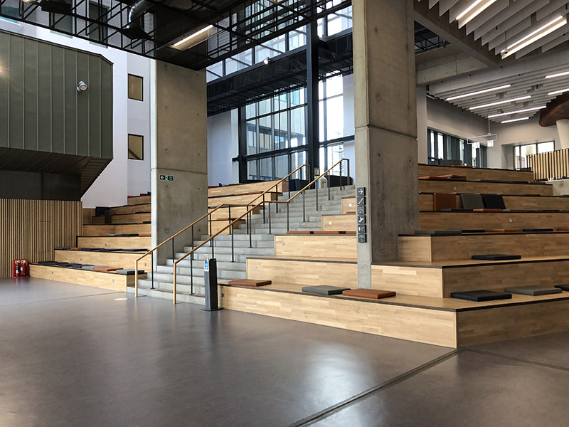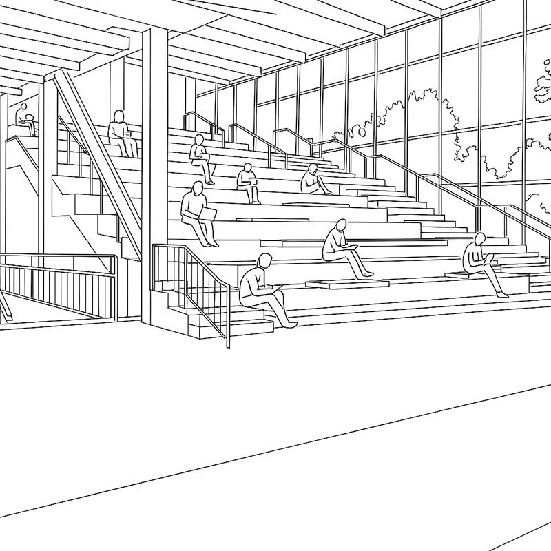 Foyers und Flure können mehr als reine Verkehrsflächen sein: Mit gezielter Möblierung werden sie zu Lern-, Begegnungs- und Präsentationsorten. Sie sind besonders geeignet für spontane Besprechungen, kurzes Arbeiten oder Ausstellungen.