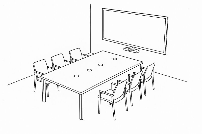 Ein Videokonferenzraum ist ein speziell ausgestatteter Raum für digitale Meetings, Projektabsprachen und hybride Veranstaltungen. Er ist schallgedämmt, verfügt über hochwertige Kamera-, Mikrofon- und Lautsprechertechnik sowie ein nutzerfreundliches Steuersystem.