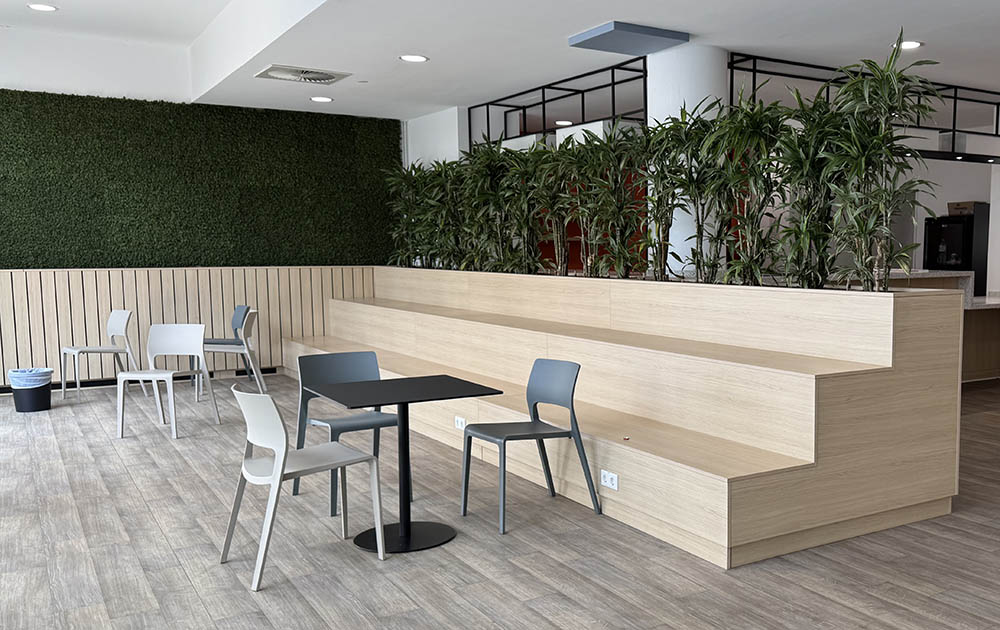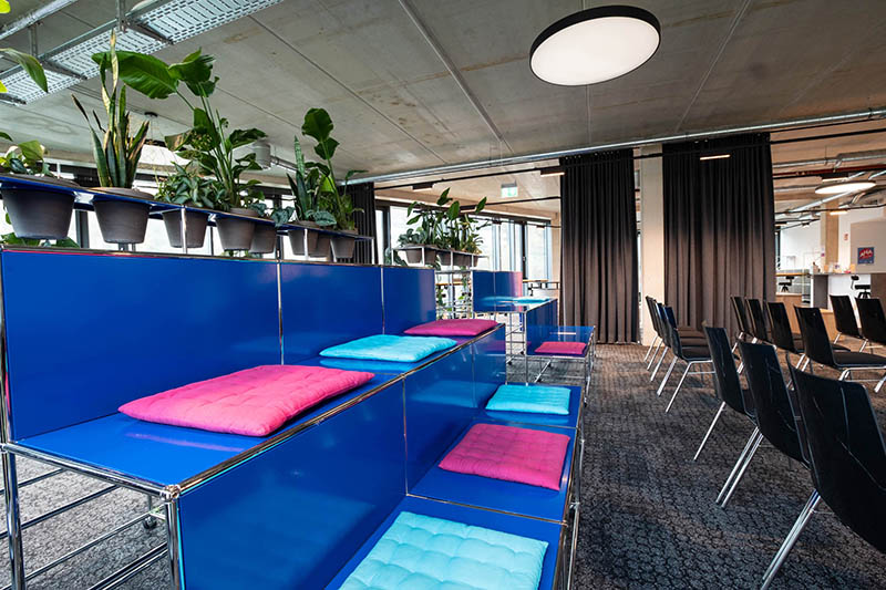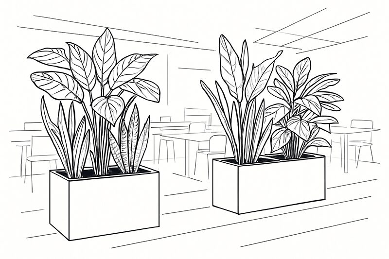 Pflanzen verbessern die Raumqualität, fördern das Wohlbefinden und strukturieren offene Lernbereiche. Sowohl echte als auch hochwertige künstliche Pflanzen können Akzente setzen.