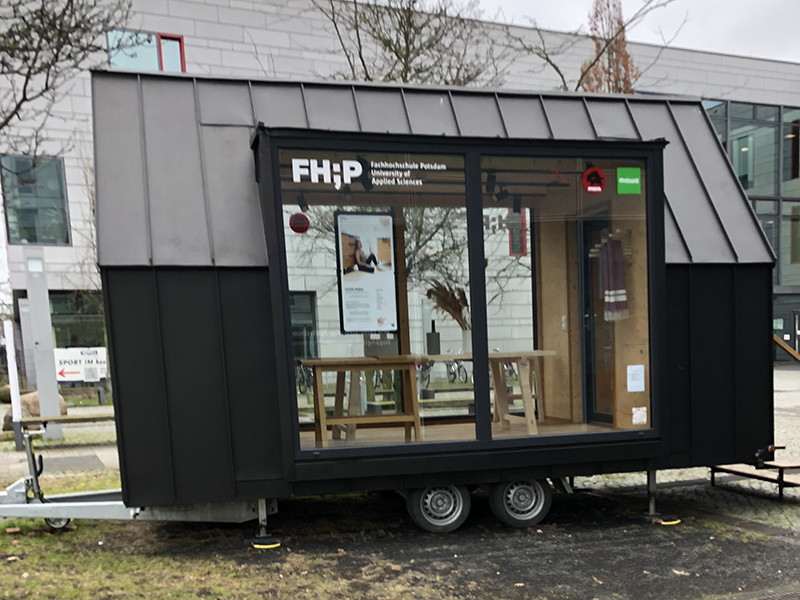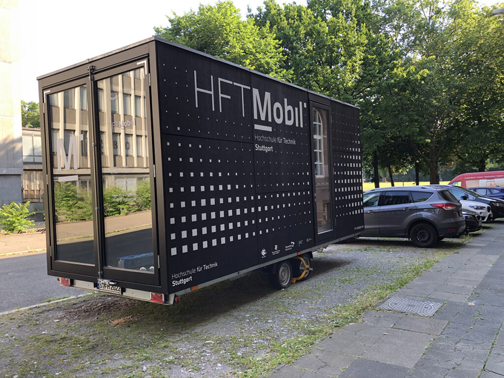 Ein Lernanhänger ist ein mobiler Lernraum in einem Anhängerformat, der an verschiedenen Orten auf dem Campus oder im öffentlichen Raum platziert werden kann. Er bietet Platz für Kleingruppenarbeit oder konzentrierte Einzelarbeit und ist mit grundlegender Infrastruktur (Tisch, Stühle, ggf. Monitor, Stromanschlüsse, WLAN) ausgestattet. Die flexible Platzierung erlaubt Einsätze bei Veranstaltungen, auf temporär ungenutzten Flächen oder als Outreach-Element z. B. bei Schulkooperationen.